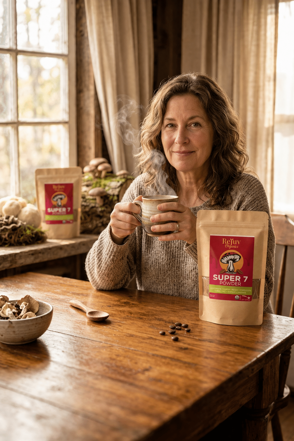 Our Pure Organic 7 Mushroom Blend brings together seven of the world’s most respected mushrooms—Turkey Tail, Lion’s Mane, Cordyceps, Chaga, Shiitake, Maitake, and Red Reishi—carefully combined into one versatile, everyday superfood.